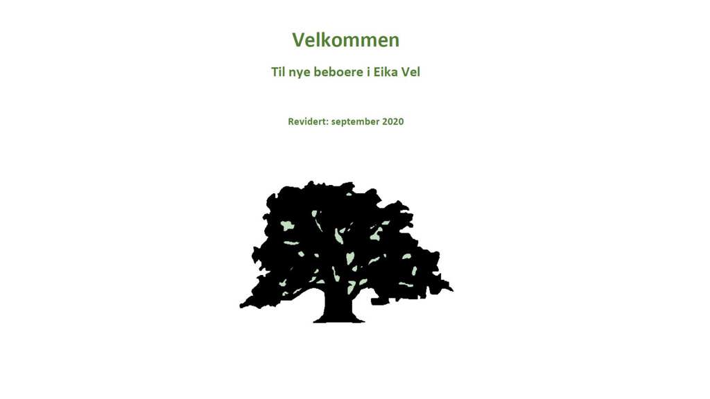 Vi har laget et lite hefte hvor vi har samlet opplysninger som vi tror er til nytte for alle som bor i Eika Vel. Noen kjenner kanskje til det meste som står her, for andre kan det være mer nytt. Vår tanke er at alle nye beboere i vellet skal få heftet når de flytter inn.
